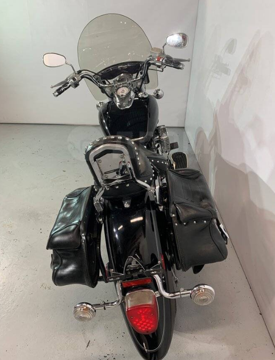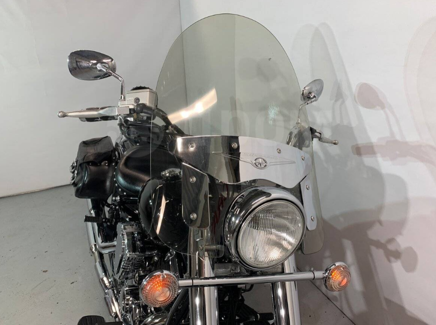Мотоцикл ввезен с пробегом 3,5 тыс. миль без технических проблем, кроме мертвого акума. Было сделано полное Т/О с заменой всего, включая колодки, чистку карбюраторов и замену масла в передней вилке и редукторе карданного вала. Заменена резина (старая родная не стертая, но дубовая сохранена), установлены перечисленные плюшки. Стекло в упаковочной пленке не устанавливал, боковые кофры и их стальные подрамники снял (Кофры не в форме, кожа требует чистки и пропитки). В результате получил милые сердцу «белые» колеса, ветер в харю и шикарную ретро классическую эстетику с рамой Softail, которую ранее закрывали кофры! Акум не думая купил новый, но поставил его только осенью 2023г. Ездил на старом американце 2008г. выпуска, который после реанимации, оказался устойчивее к долгим простоям, чем новый китаец.